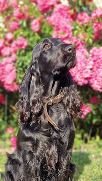 Blivande pappa är en snart 9 år gammal engelsk springer spanielherre som bor i Tyskland. Ludwig vom Belauer See, eller Gimli som han kallas, är en hane med mycket stabilt psyke. Han jobbar som skolhund med barn med särskilda behov, används i praktisk jakt som stöthund och apportör, har godkänt på tysk mentalbeskrivning och i den högsta jaktprovsklassen - för att klara allt detta krävs både stabilitet, naturliga anlag, självständighet och massor med 'will to please'. Både i vardagen och på jakt är han sansad och har en bra av- och påknapp. Fantastiskt roligt att få möjlighet att använda en äldre väl utvärderad hane med Gimlis kvaliteter!